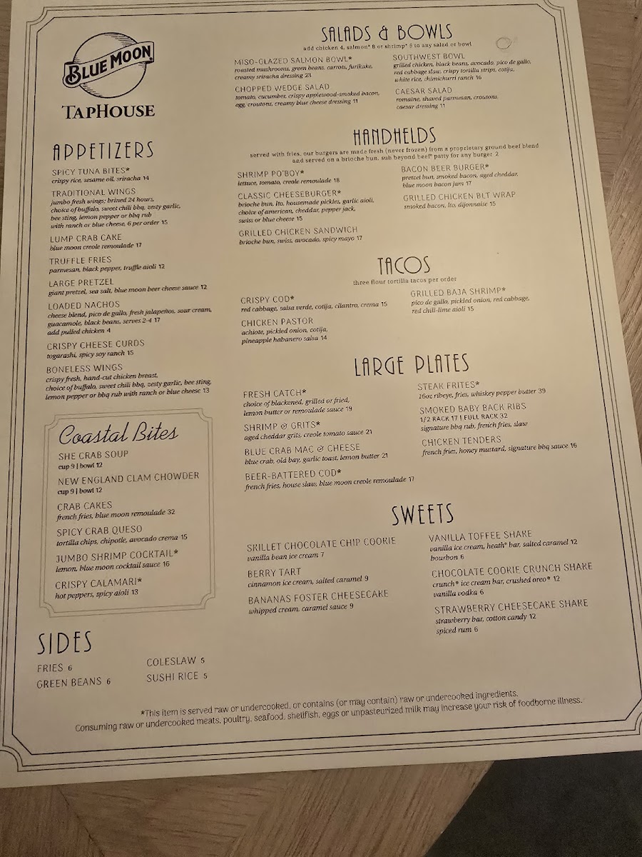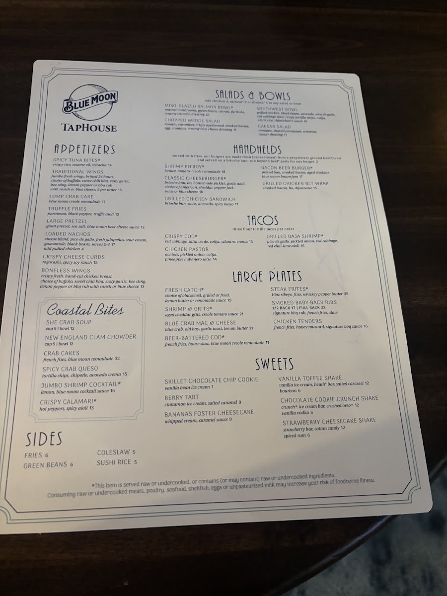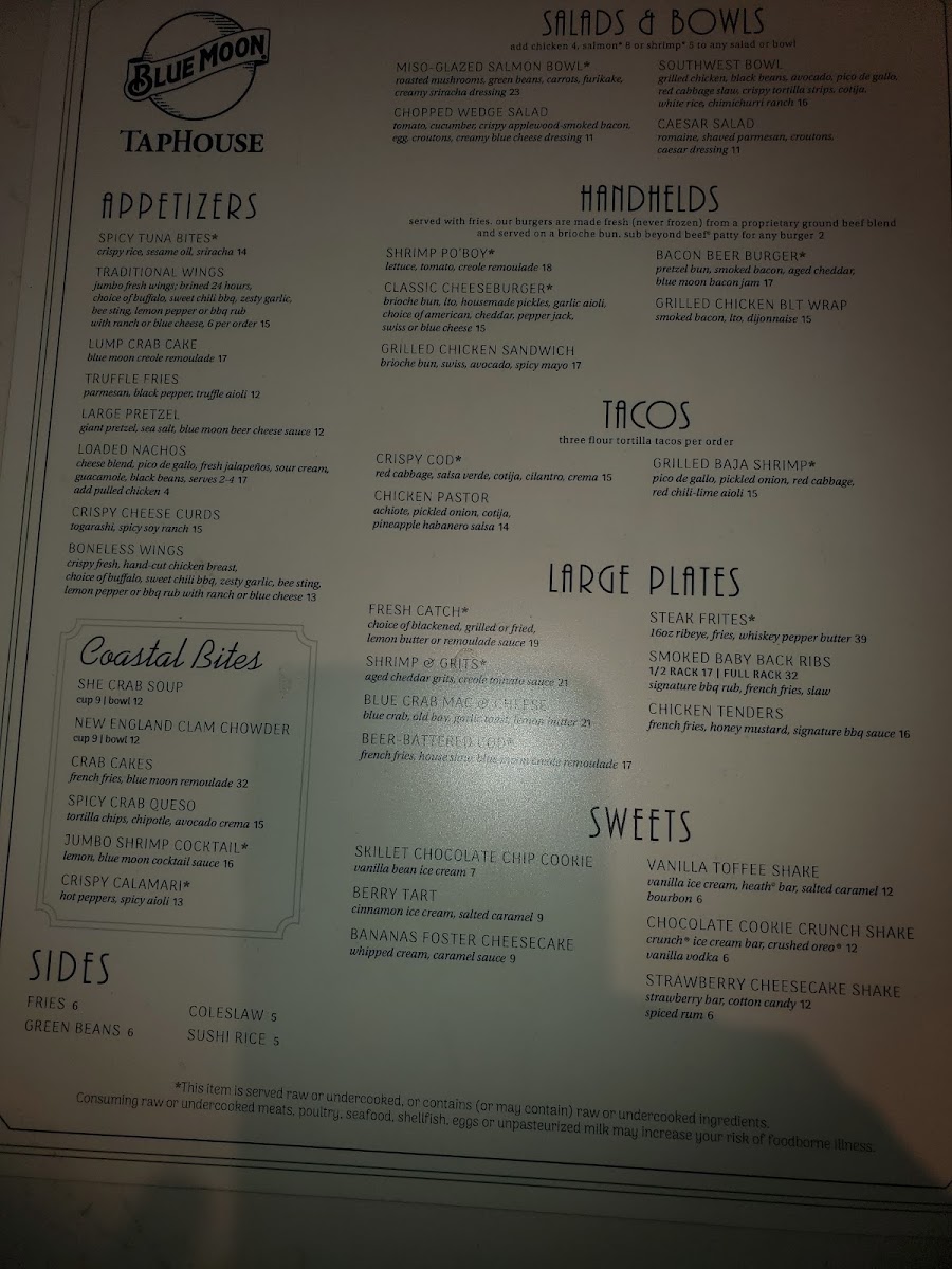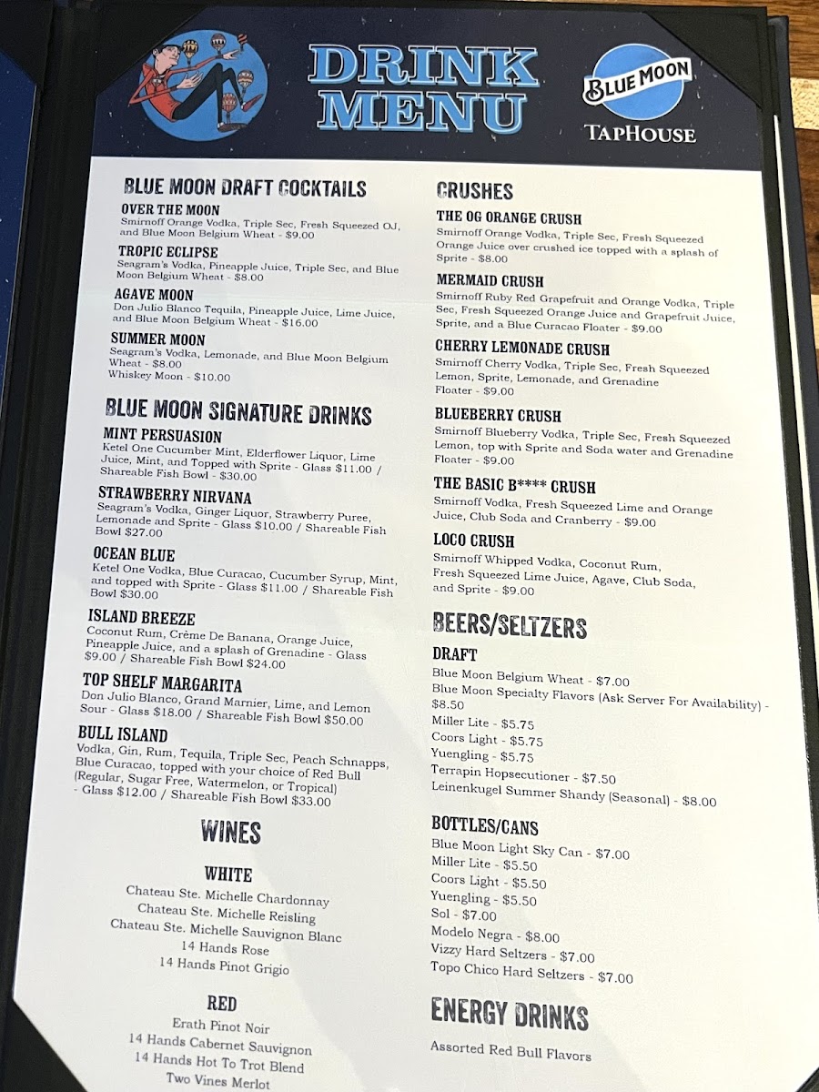 Blue Moon Taphouse Menu