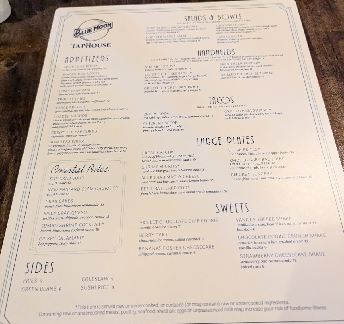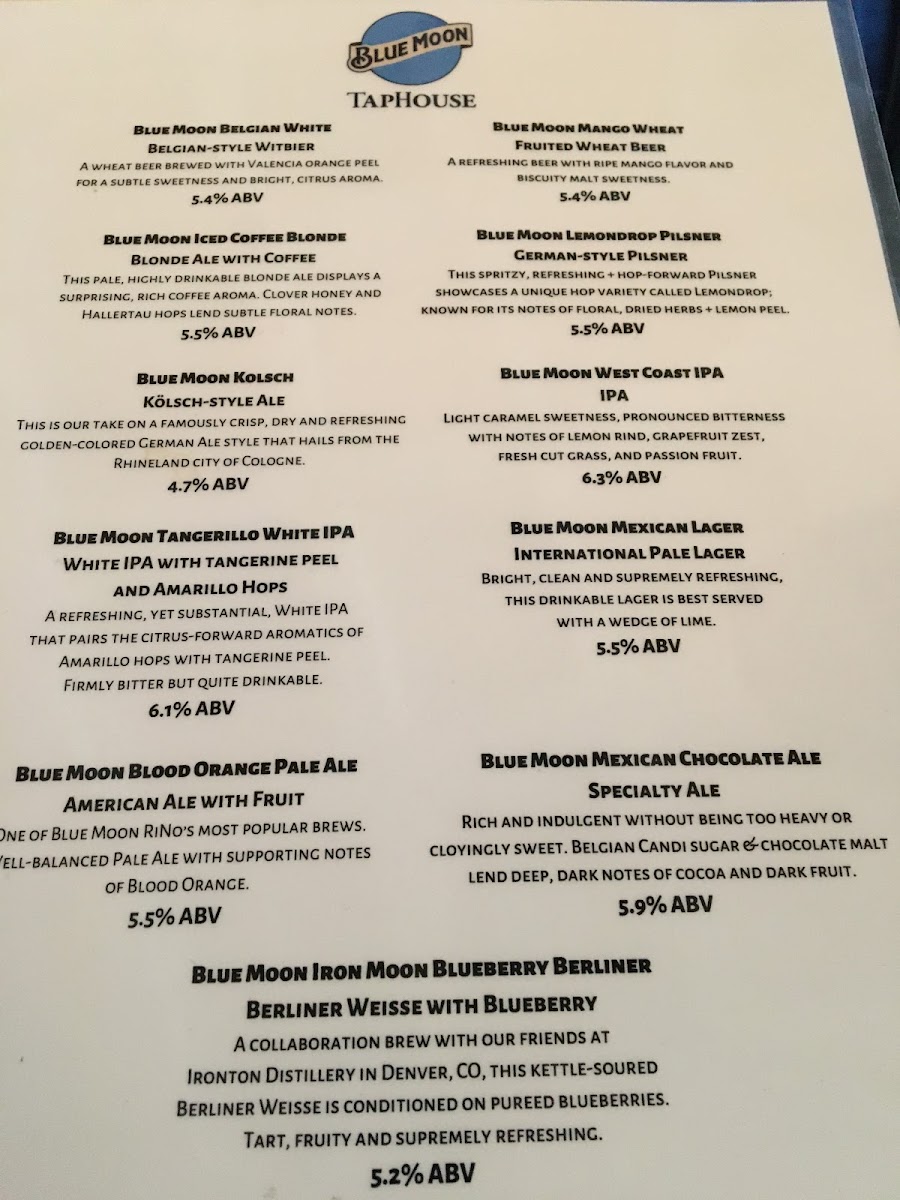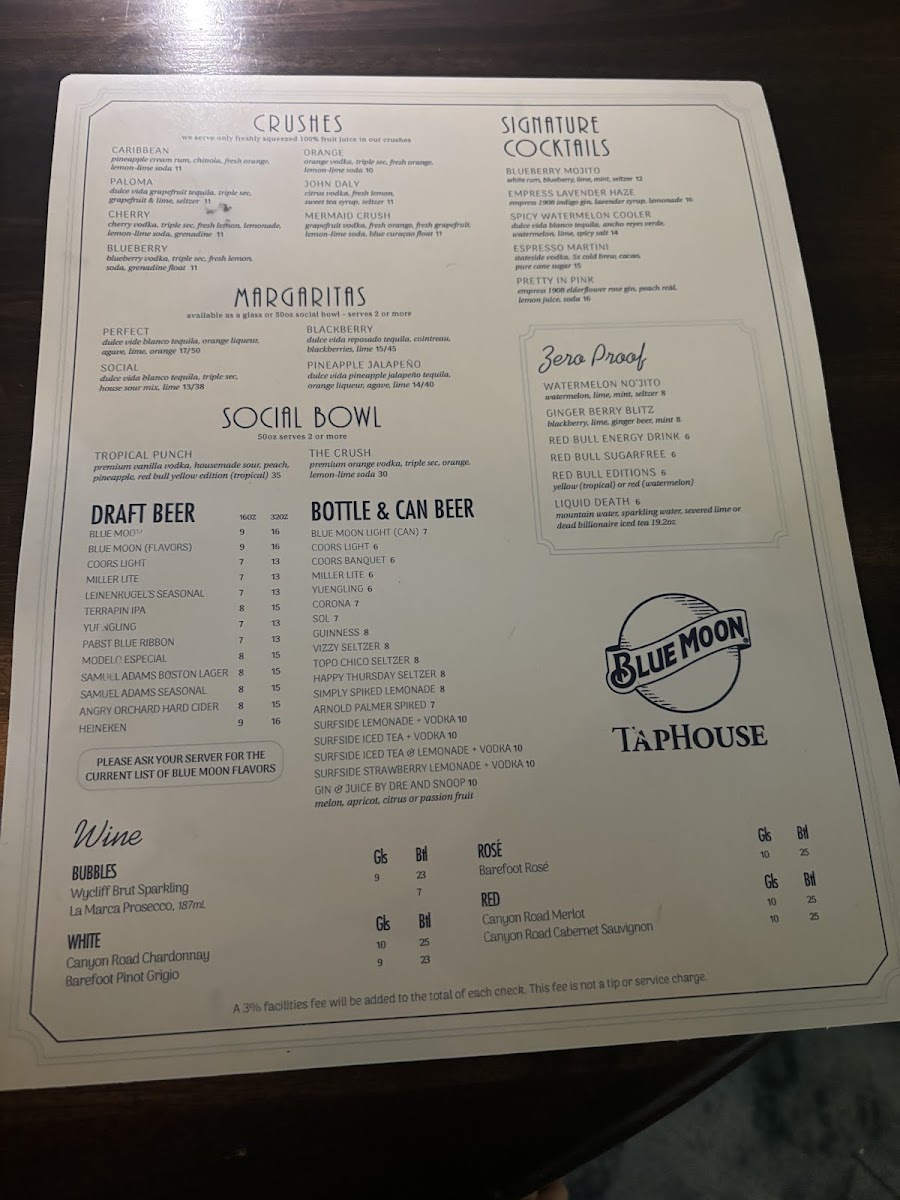 Blue Moon Taphouse Menu